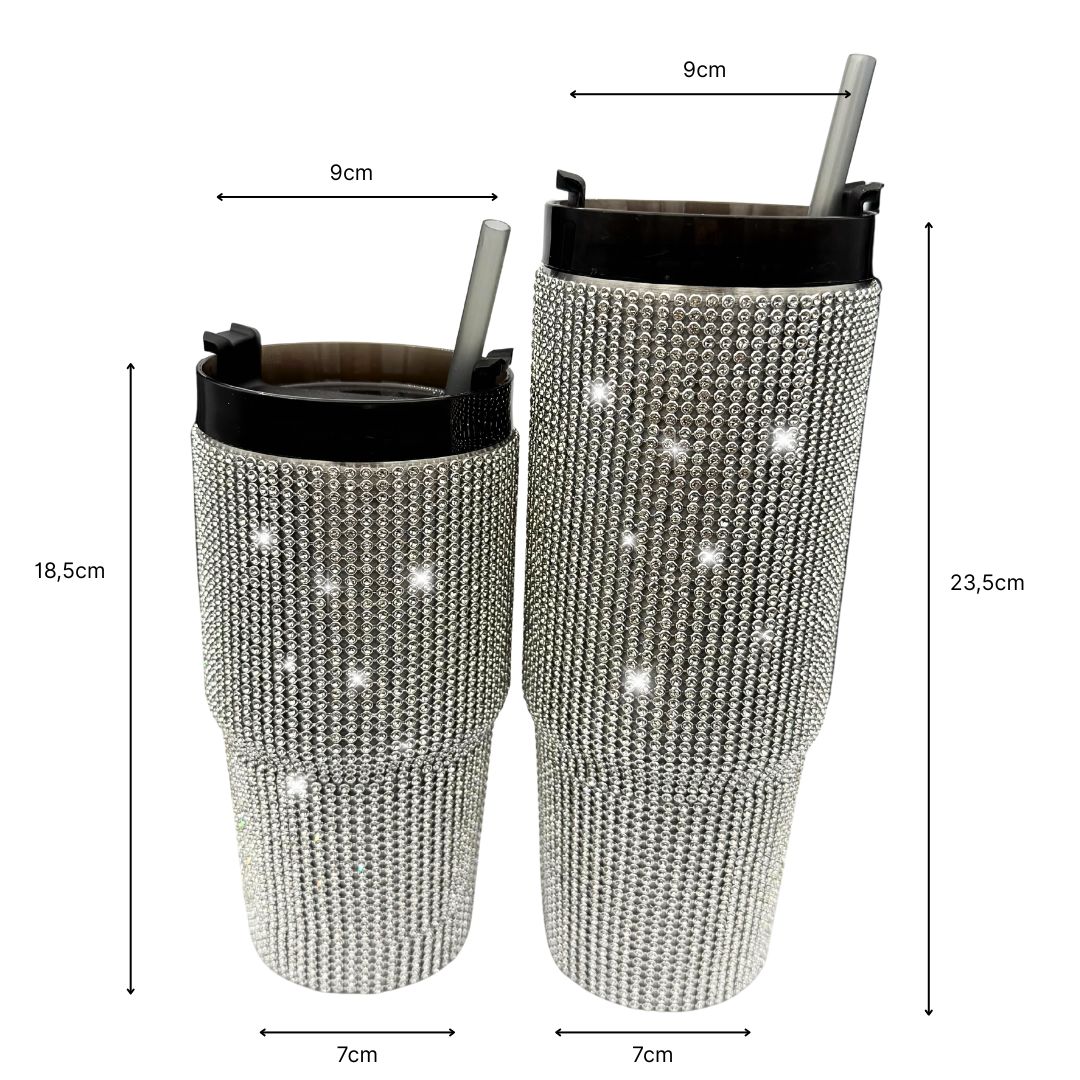 - De Bling Bling cup is een hebbedingetje van kwaliteit en elegantie. Met een van 750ml of 500ml inhoud is deze fonkelende beker overal mee naartoe te nemen. Of je nu thuis, in de auto, op school, in de sportschool, op het werk of op reis bent, deze schitterende tumbler houdt je gehydrateerd en in stijl. Het strakke ontwerp en de chique looks maken gegarandeerd indruk, en hij is ook nog eens makkelijk schoon te maken!